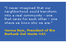 Within the , 19 Neighborhood Action Coalitions (NACs), consisting of neighborhood stakeholders, developed specific improvement plans in 2002 that clearly articulated neighborhood priorities. These NACs continue working closely with and Redevelopment Agency staff to implement the neighborhoods' top priority projects.